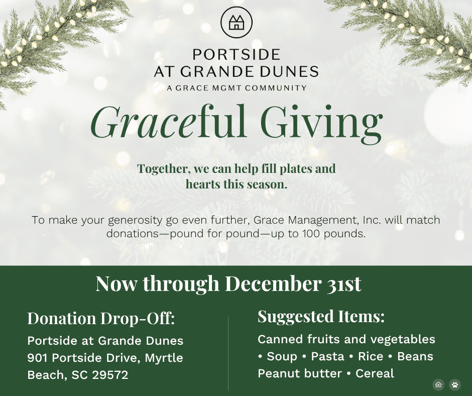 At Portside at Grande Dunes, our Graceful Dining™ approach offers a homestyle culinary experience in a warm and inviting environment. Whether sharing an intimate meal with a best friend or celebrating a special occasion with all your loved ones, we are certain that living here will satisfy your appetite for connection with others and for the most delicious food.